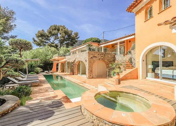 Located just a 5-minute stroll from Plage de Jean Blanc, the 4-bedroom Villa Les Pins comes with a swimming pool, a solarium. Featuring a terrace, the property is situated only a short drive from Plage du Layet Sheltered Beach.